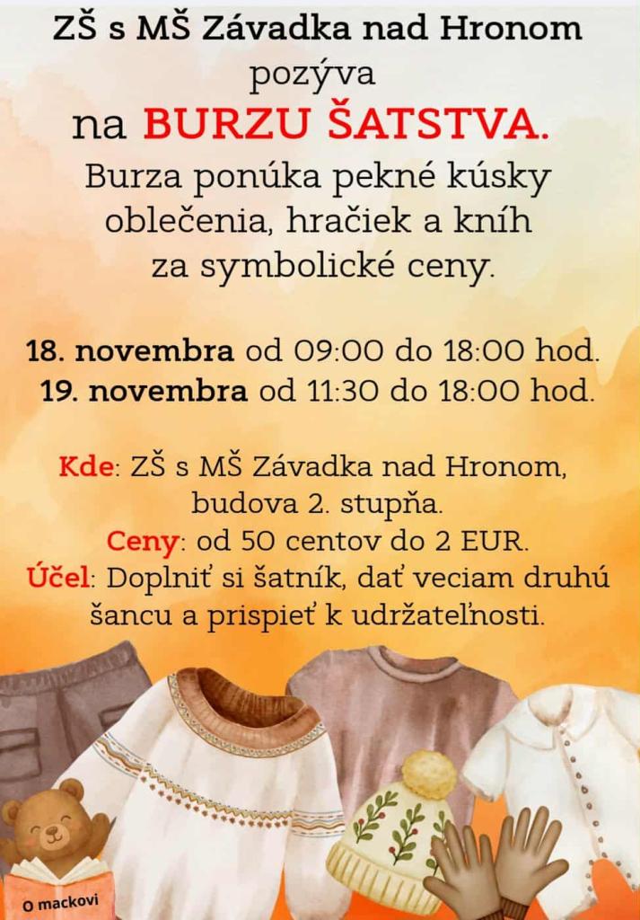 Burza oblečenia a kníh - 18. a 19. novembra 2025 - budova 2. stupňa ZŠ v Závadke nad Hronom