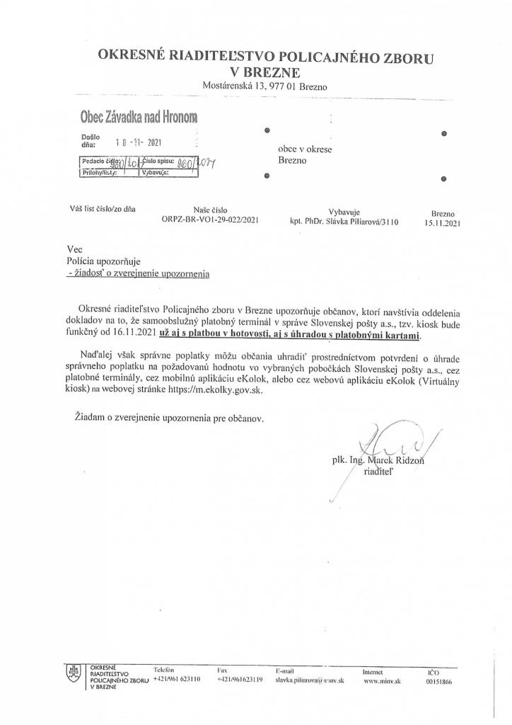 ORPZ v Brezne - funkčný samoobslužný terminál