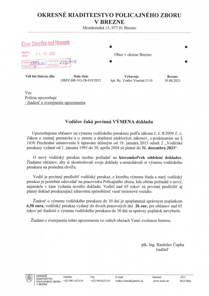 UPOZORNENIE - výmena vodičských ...